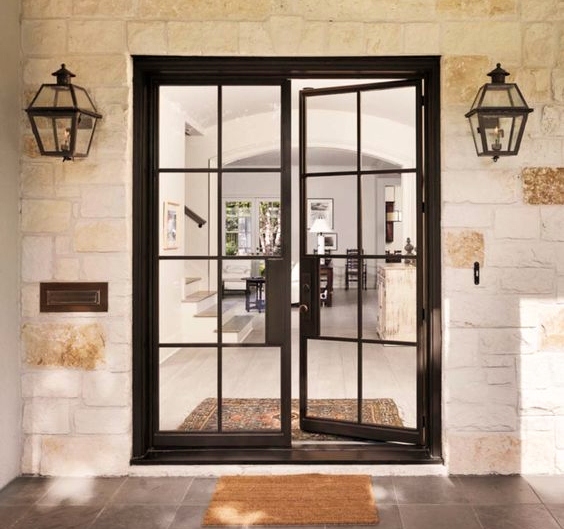 أبواب المدخل مع الزجاج 70 صورة خيارات في الهواء الطلق لمنزل ريفي ونماذج من الألومنيوم والبلاستيك مع إدراجات زجاجية