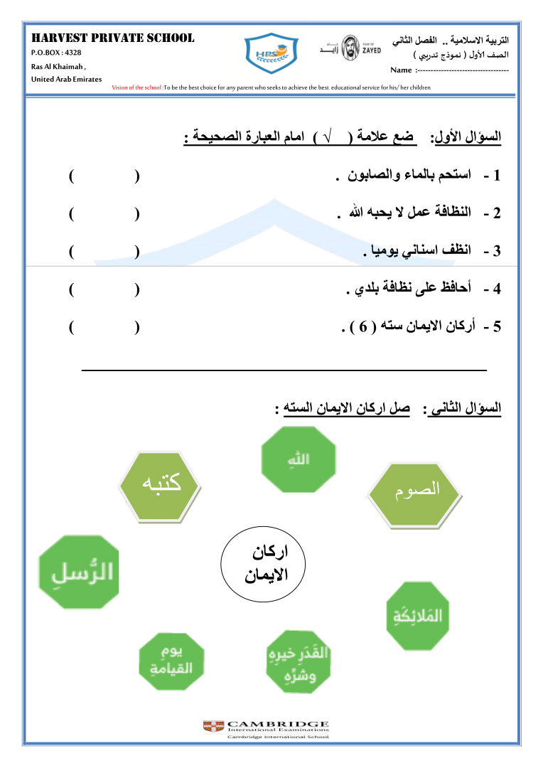 بوربوينت درس اركان الاسلام للصف الاول مادة التربية الاسلامية arabic worksheets activities for kids activities